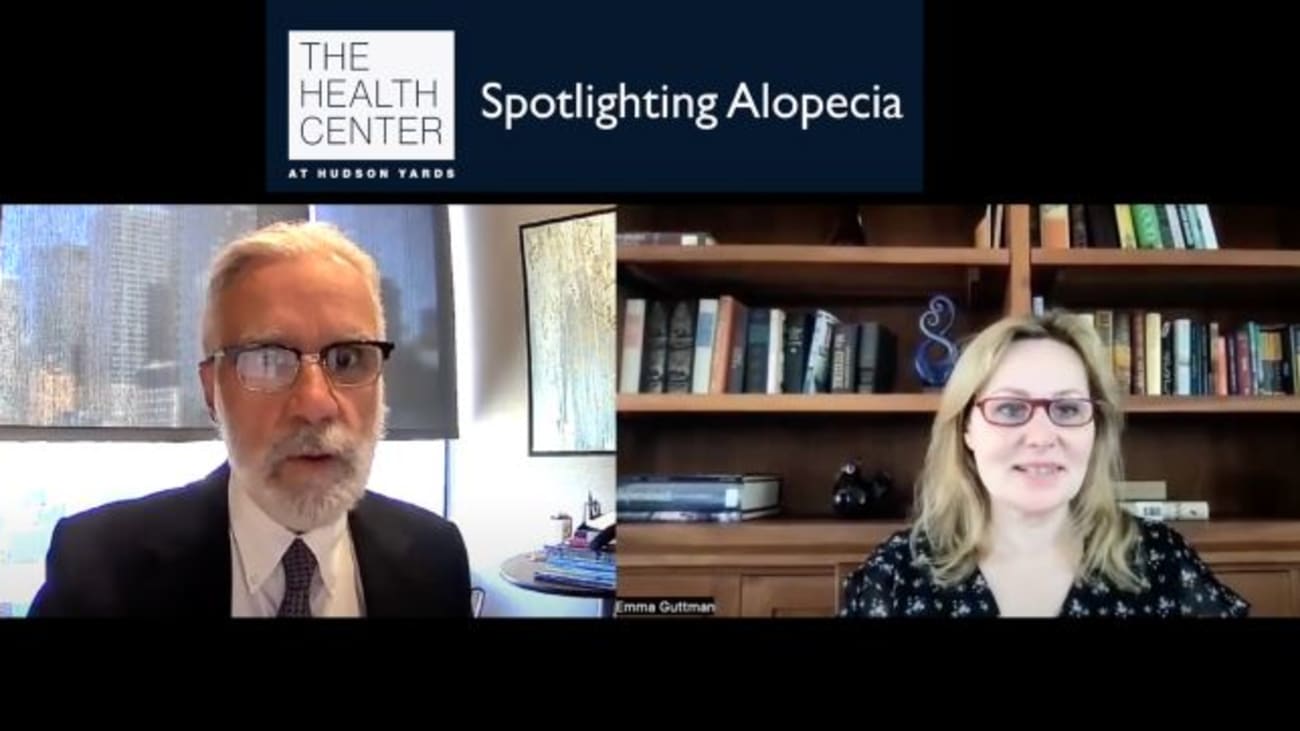 um Hello everyone. I'm dr lewis dipaolo. I am the medical director of the House Hunter Hudson yards. And today it's my great privilege to introduce um dr Emma Guttman dr Edmund Gutman Gase is an M. D. PhD and she is the waldman Professor and assistant chair of dermatology and immunology at the Icahn School of Medicine at Mount Sinai in new york city. She is director of the Center of Excellence in eczema and the occupational dermatitis clinic and director of the laboratory for inflammatory skin diseases. She earned her MD from Sackler University School of Medicine and a PhD from bali in university in Israel. After obtaining her Israeli board certification dermatology. Uh she went on to I knew her work in the United States and pursue a two year postdoctoral fellowship at the Rockefeller University in the laboratory for investigative dermatology. Upon completion of her fellowship she became board certified by the american board of dermatology. Dr new york dr Guttmann major clinical research focuses on a topic dermatitis, eczema and alopecia Areata. Her research made paradigm shifting discoveries on the biologic basis of a topic dermatitis in adults and in Children, enriching the understanding of the path of physiology of this common disorder. Opening the door and accelerating testing of novel immune pathway specific targeted therapies for a topic dermatitis. Recently dr government also extended the research interest in the hair loss disorders such as alopecia Areata and scarring hair loss disorders, chronic hand X. And the key Lloyd's ethio sis and other skin diseases that the government is considered one of the world's leading experts in inflammatory skin disease. Her achievements have been repeatedly highlighted by the media, including the new york Times Abc CBS News, Daily News where it is Wall Street Journal new york and others I can go on, but I think your CV speaks for itself. Um and I'd like to begin with the fact that the unfortunate events around Jada Pinkett smith really highlighted um really the emotional suffering of most families and patients. Uh the lack of public awareness and the need for an informed conversation around the subject of alopecia in all of its various forms and presentations so that the government may 1st begin with the question, what is alopecia? Sure. So there are several flavors of alopecia or several types of alopecia. The one that Jada has is alopecia Areata and that's an autoimmune condition that basically there is an attack of immune molecules on the hair follicles causing uh at the end lack of hair. It starts usually with patchy hair loss and then it spreads to be many times a total scalp or total body hair loss. And there are other types of alopecia that we see more in either a middle aged women or for men, but more in female patients, scarring. Alopecia is called frontal alopecia or like in planet hilarious. And there is also a form that is quite common in, in in particularly in african american women. They can also be young in which they start losing hair in the top of the scalp or the frontal scalp And that's also causing a lot of distress to patients as well. And we are going to take care of these patients as well because now we have some major discoveries in that type of alopecia as well. Thank you so much. You alluded to uh you know the emotional stress and we certainly saw that in a very public form. Um can you give us some insights to you know little girls and and women and men I assume who are faced with this, what kind of um stress they experience both for themselves, maybe socially uh and what the impact can be sure. So in alopecia Areata can affect all ages and all races and in in both men and women and Children. Even very young Children receiving babies with alopecia Areata it causes a lot of distress to the patient and to the family. I've seen a really terrible cases and and the reason being is that we currently do not have anything approved for patients with alopecia. Yeah, I know it sounds terrible but that's the case. We really don't have anything approved to give patients and particularly devastating I think are the cases in which there is significant heroes when we are talking about major parts of the scalp and the body being lost. You know here is in a way your identity and particularly when you also lose a eyebrows and eyelashes, You look in the mirror and you see somebody different and you can imagine for kids they are being bullied in school not invited to parties. And also I have many patients that at the workplace they start looking differently at them many times they think they have cancer right? Because you are bold, you lose hair, you probably aren't treated with chemotherapy. And I have a patient that is a lawyer was coming in front of a judge, the judge was asking him how is your chemotherapy going? You know things of this sort on a daily basis. So aside from the obvious uh presentation, you talked about the hair loss um how do you diagnose these different types of alopecia? We sometimes hear stress causes hair loss. How do you how do you differentiate, how do you approach a diagnosis diagnosis? Sure. And so many times we do need to do a biopsy and you do need to go to a dermatologist because it is important to know what type of politicians you have. So that will be able to treat you the right way because treatments may be different and sometimes there is even a little bit confusion because for example, maybe a guy, a young guy let's say starts to have male pattern hair loss. But then on top of that male pattern hair loss. He also has alopecia areata and maybe that we can treat an we have examples of patients that in clinical trials they grow their hair in full in areas that they could grow in full. But you know in frontal Scout, they still have that male pattern baldness. However, most of their hair is already back. So important to go to the dermatologist and many times we do need a biopsy just to make sure that you know 